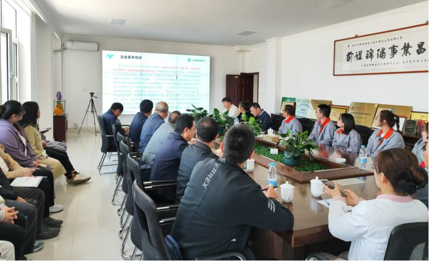 424上午公司党委副书记杨彦侃(主持党委工作)、党委副书记兼副经理黄明亮、副经理赵宏宇带队,生物工程系主任徐永斌食品科学与工程系主任程立坤,卢俊教授、刘国君老师、综合办负责人解文霞以及负责就业工作的辅导员乌日根老师一行并组织公司18名毕业生,赴鄂尔多斯市中轩生化股份有限公司开展访企拓岗促就业专项行动。