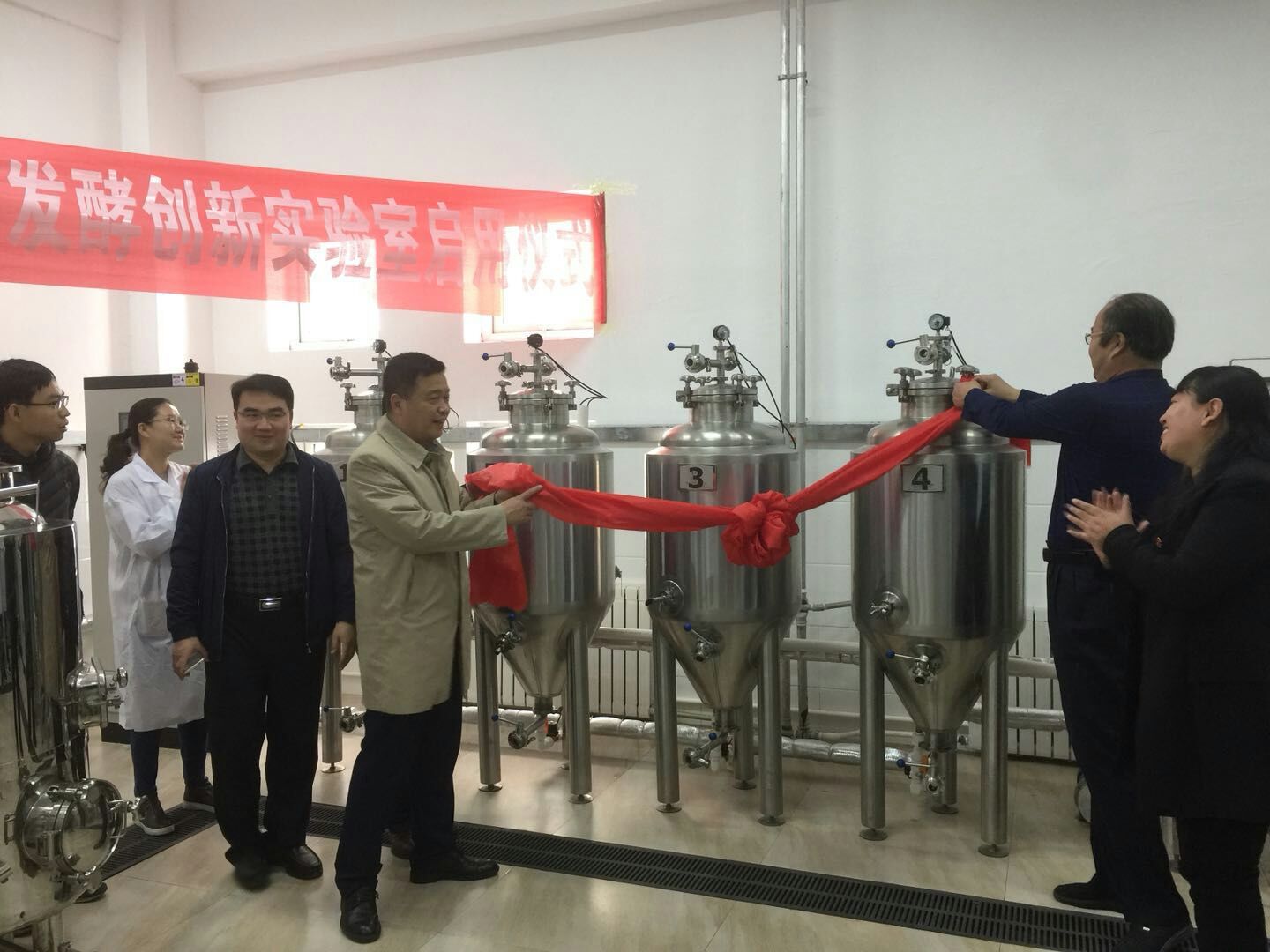 老员工创新创业平台A219实验室2号发酵罐22日顺利出酒,标志着EMC易倍和工程训练中心共建的啤酒创新实验室顺利启用。