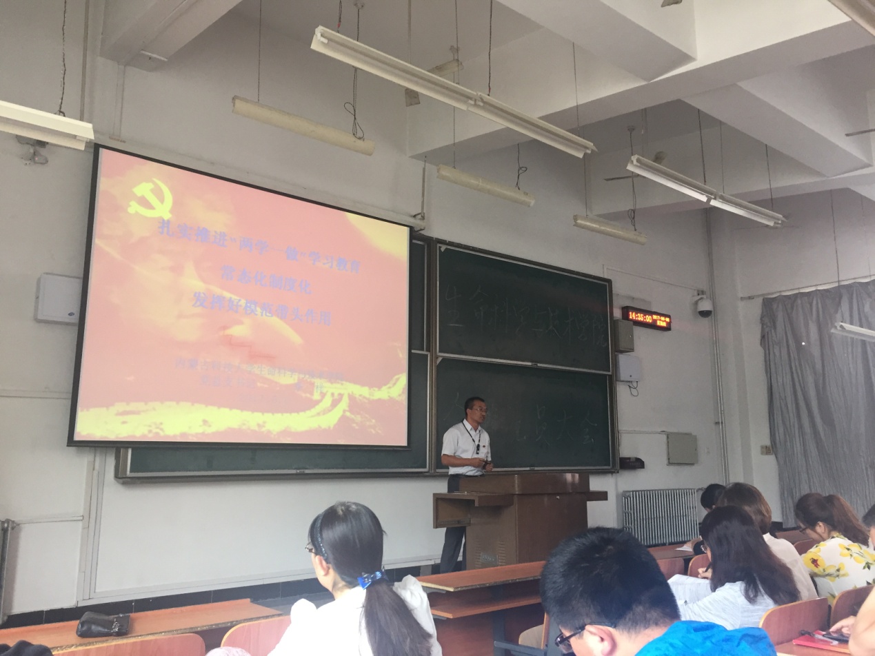 6月8日星期五下午2点半,生命科学与技术公司党总支书记季祥为生科院全体党员讲了一堂题为:“扎实推进“两学一做”学习教育常态化制度化,发挥好模范带头作用”的党课。