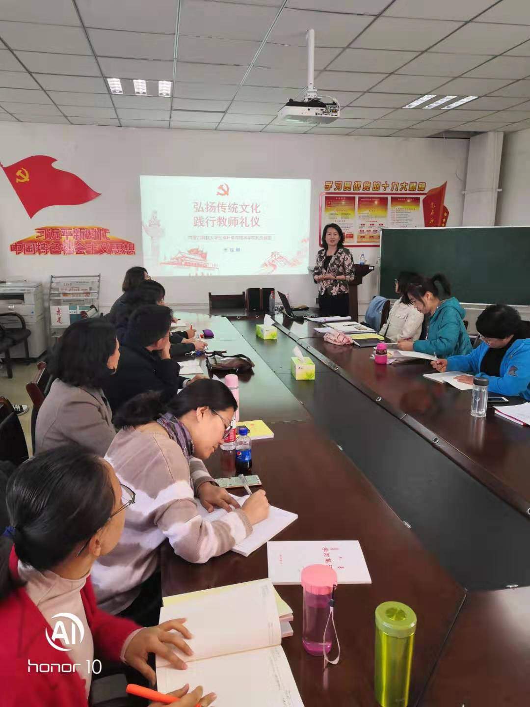 2019年10月24日下午,EMC易倍邀请党政办公室李瑞卿老师为全体教工党员做了“不忘初心、牢记使命”主题教育专题讲座,讲座题目为《弘扬传统文化、践行教师礼仪》。
