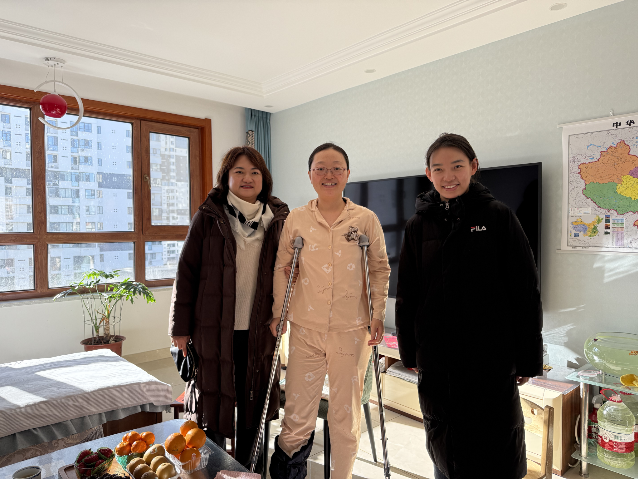 12月30日,公司党委书记李德超,生物技术系副主任、党支部书记张彤,工会委员刘国君对因工伤在家康复治疗的毕捷老师进行家访慰问,并送上关怀和温暖。
