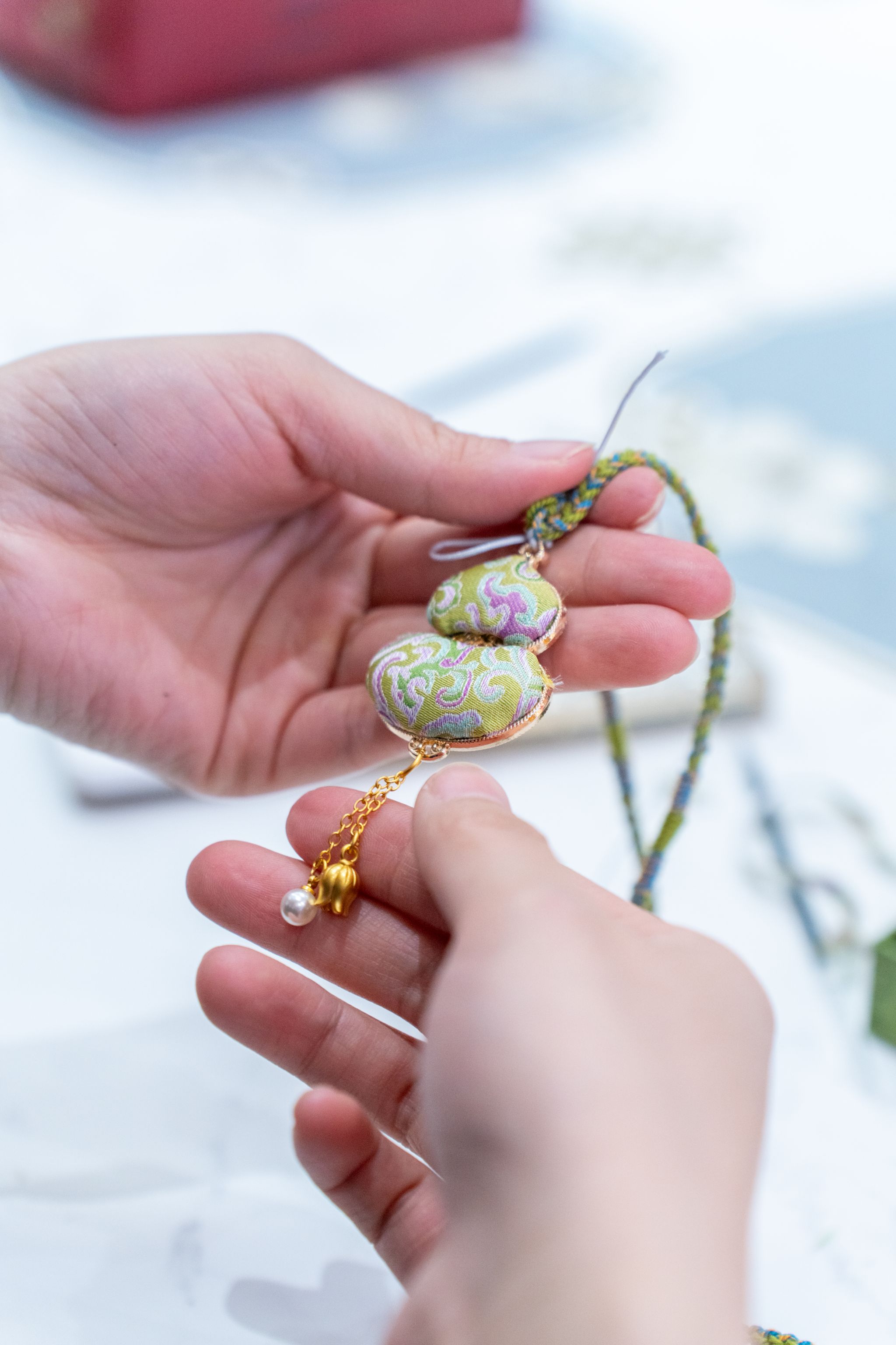 宋锦,以其独特的织造工艺和丰富的图案设计,成为了中华文化中的瑰宝。其独特的织造工艺和丰富的图案设计,使得每一件宋锦饰品都充满了独特的魅力,是古风与时尚的完美碰撞。