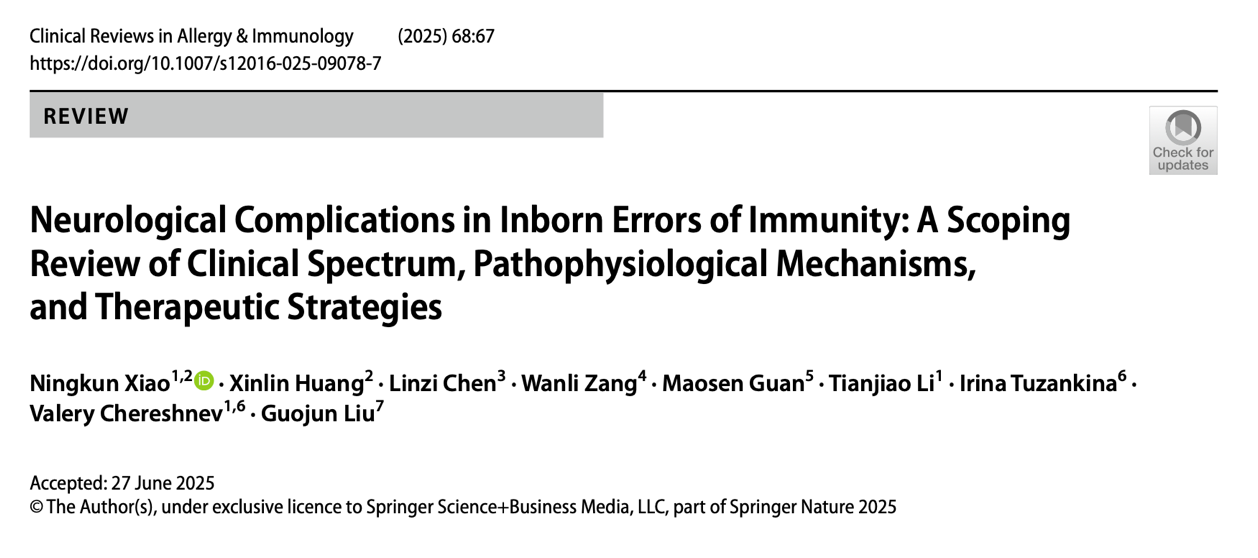 热烈祝贺公司刘国君老师团队在一区Top国际权威期刊《Clinical Reviews in Allergy & Immunology》(影响因子:11.8)上发表学术综述论文!