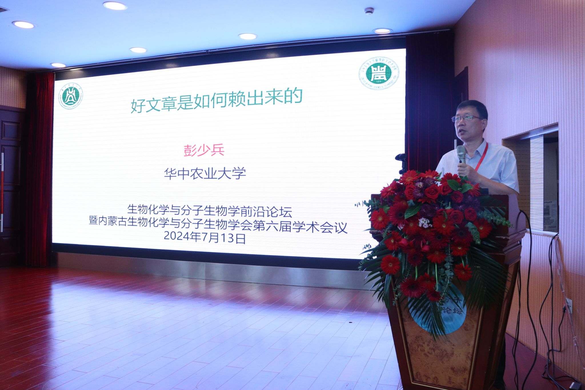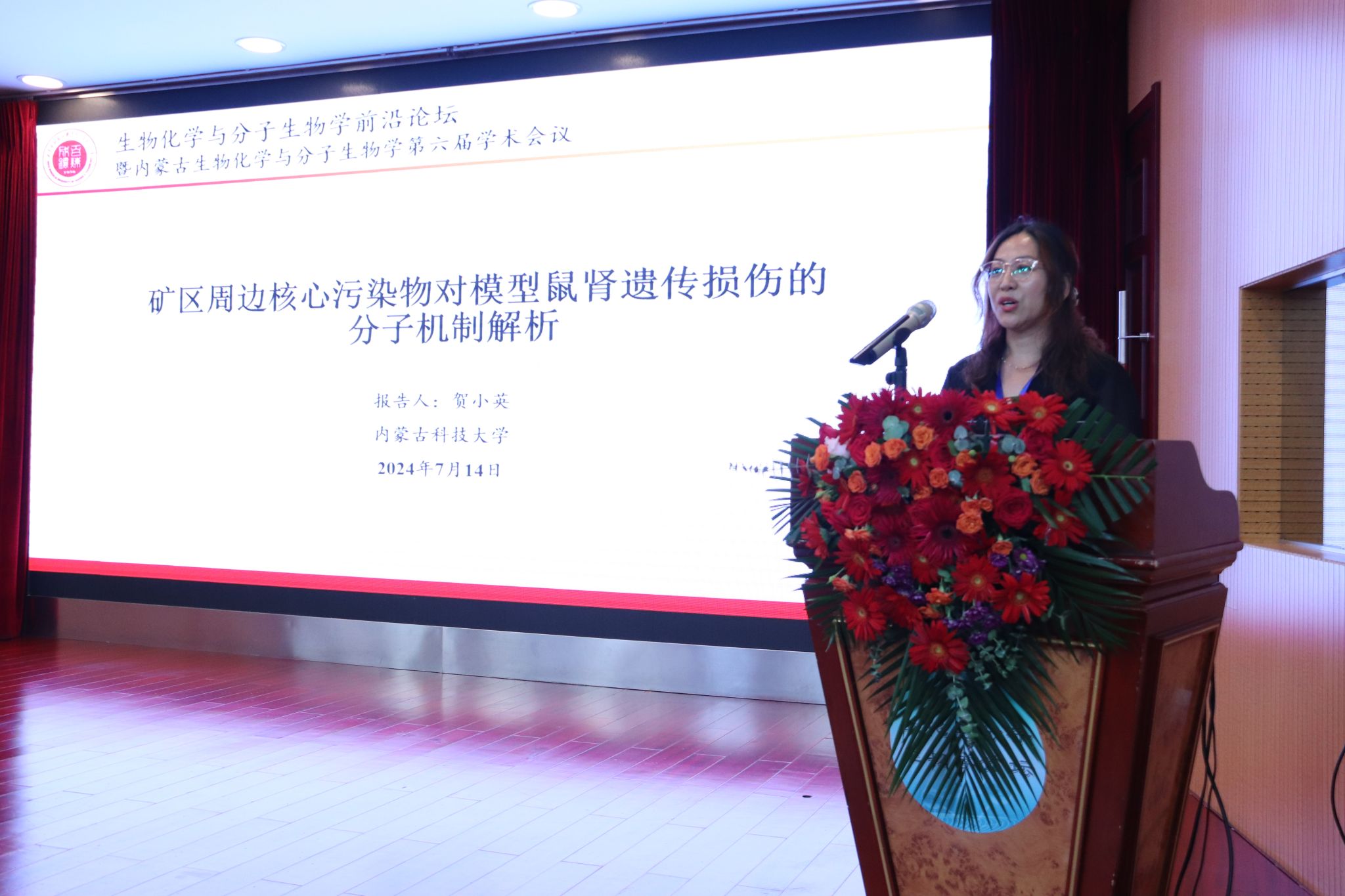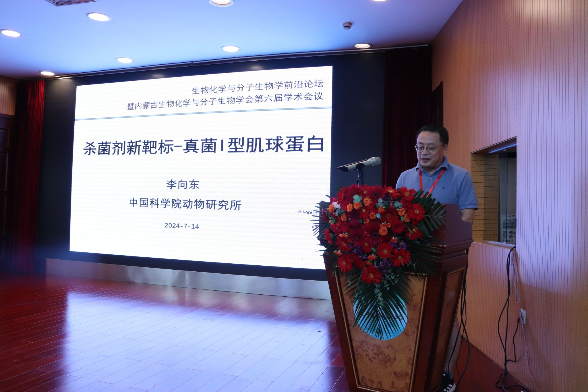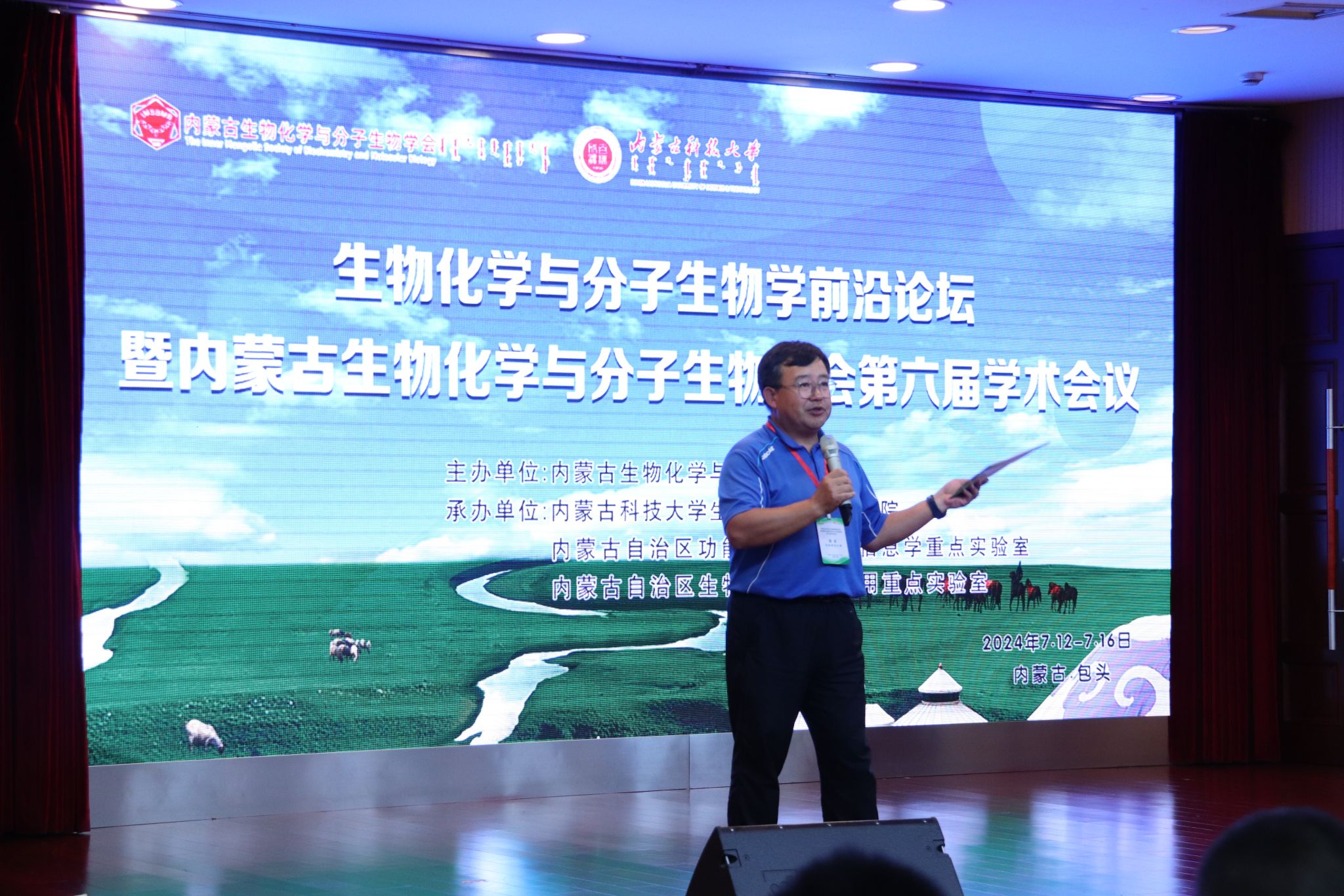 内蒙古生物化学与分子生物学会秘书长邢万金教授致辞。邢万金对齐聚“鹿城”包头的专家学者及会议承办方表示感谢,并指出希望通过此次交流学习的机会,能够展示生物化学与分子生物学研究最新成果,为内蒙古生命科学领域的科技进步与创新,做出更大贡献。