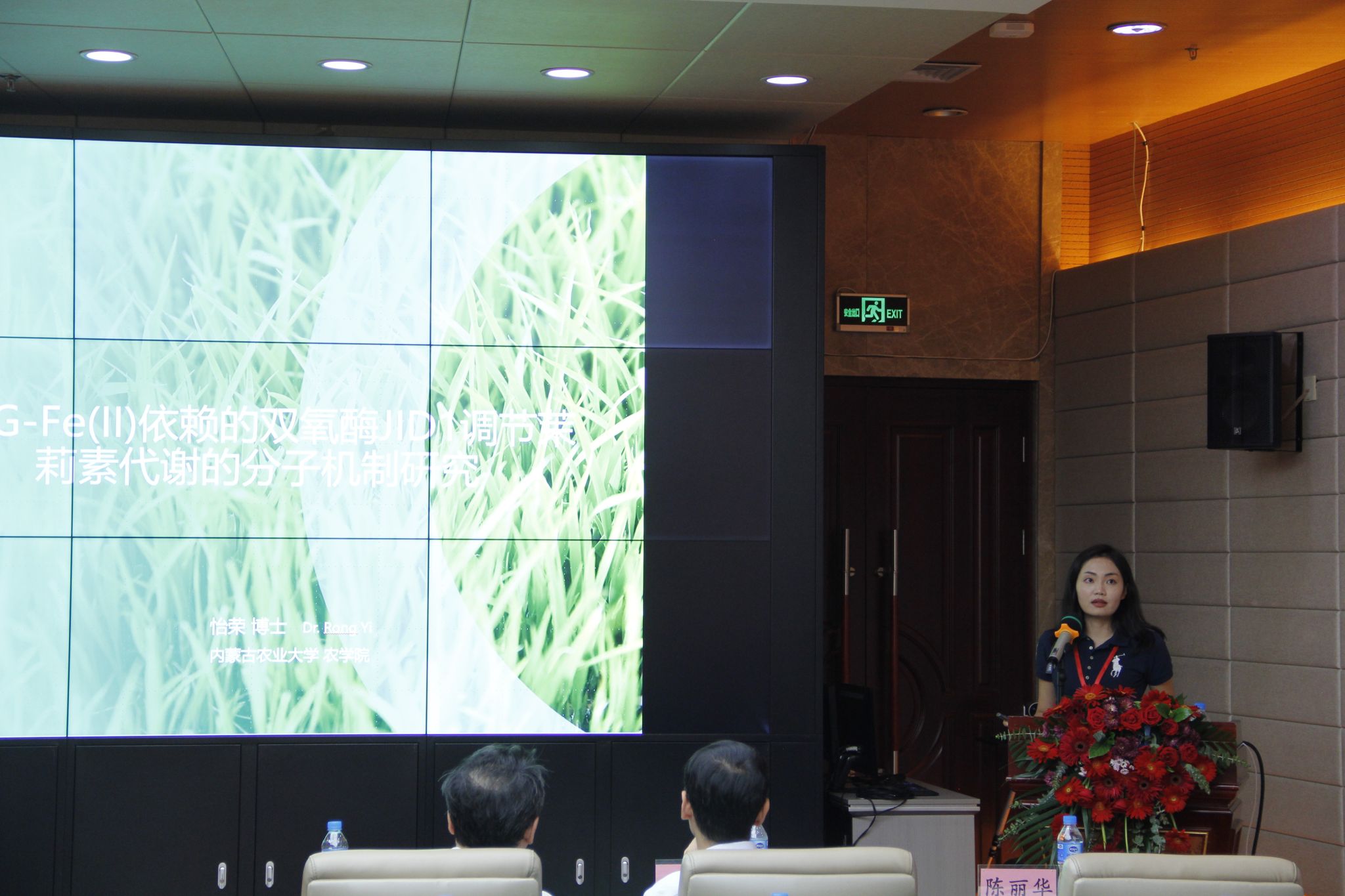 第四单元的第二分会场由深圳市南山区产业(产学研)联盟特聘专家、中科新进的创始人、中国科公司深圳先进技术研究院任培根教授,澳门大学健康科学公司狄利俊副教授,中国生物化学与分子生物学会会员、内蒙古大学李贺副教授,内蒙古农业大学农公司怡荣副教授等,分别作《针对GPCR的非酒精性脂肪肝可口服多肽药物开发》、《CTBP促进乳腺癌转移的功能和机制研究》、《生命科学教学科研集群化背景下的生物化学课程建设》、《HY5调控茉莉素生物合成及氧化代谢促进植物抗虫的分子机制》等专题报告。